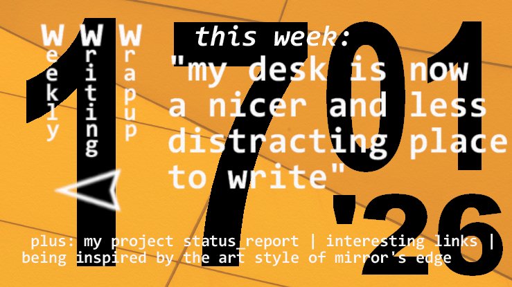 With my DIY this week, I had less time to split between creativity and consumption, but I remained disciplined and continued writing every day (my streak is up to 589 days). It would have been easy to use the reorganisation of my lounge as an excuse to take a day off, especially as I was moving my PC and all the cables, but I wrote before I began taking everything apart on Monday evening so I wouldn’t miss out on my session.