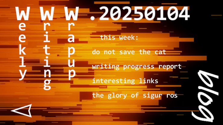 This week: do NOT Save The Cat and the importance of originality; an update on my writing; The Spike-related links; and the glory of Sigur Rós.