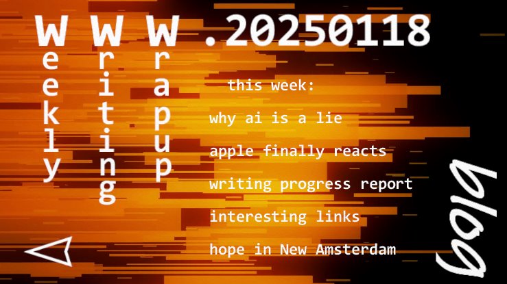 This week: why AI is a lie; Apple finally reacts; an update on my writing; The Spike-related links; and recognising hope and joy don't have to be corny with New Amsterdam.