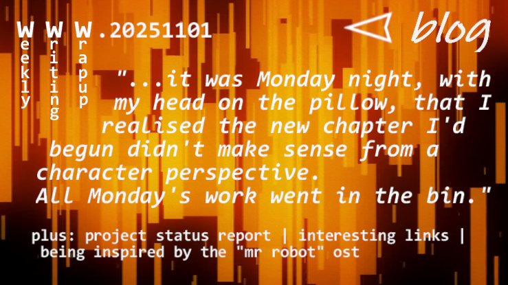 This week: false starts revising The Spike Volume 2; the status of my current projects; The Spike-related links; and being inspired by the "Mr Robot" OST.