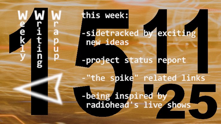 This week: sidetracked by exciting new ideas; the status of my current projects; The Spike-related links; and being inspired by Radiohead live.