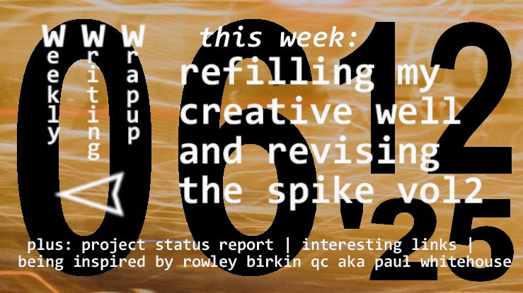 This week: using my holiday to refill my creative well and revise Volume 2; the status of my current projects; The Spike-related links; and being inspired by Rowley Birkin QC aka Paul Whitehouse.