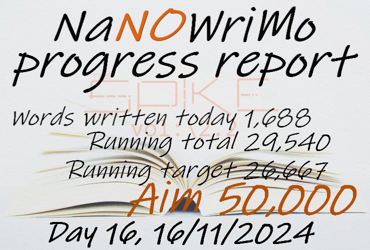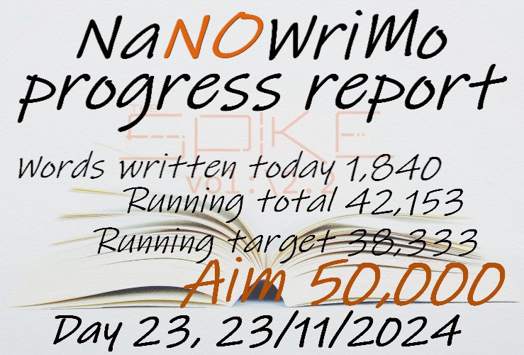 NaNOWriMo 2024 day 23 update – will I complete the challenge? (yes) 23/11/2024 arrowmakerbooksLeave a comment I hate clickbait titles. There's no jeopardy here.