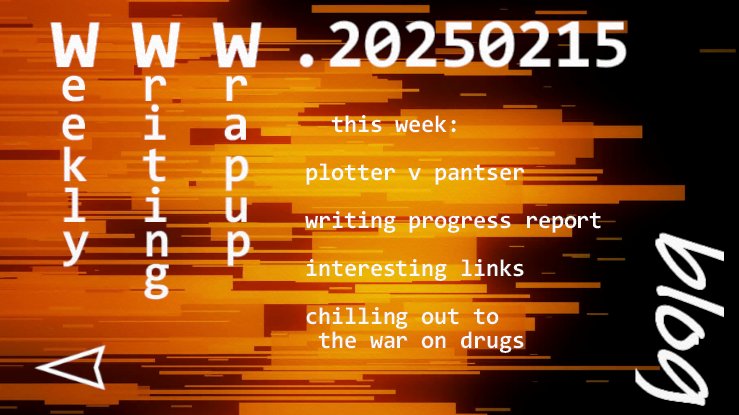 This week: the pros and cons of planning a piece of writing vs making it up as you go; an update on my writing; The Spike-related links; and chilling out to The War On Drugs.